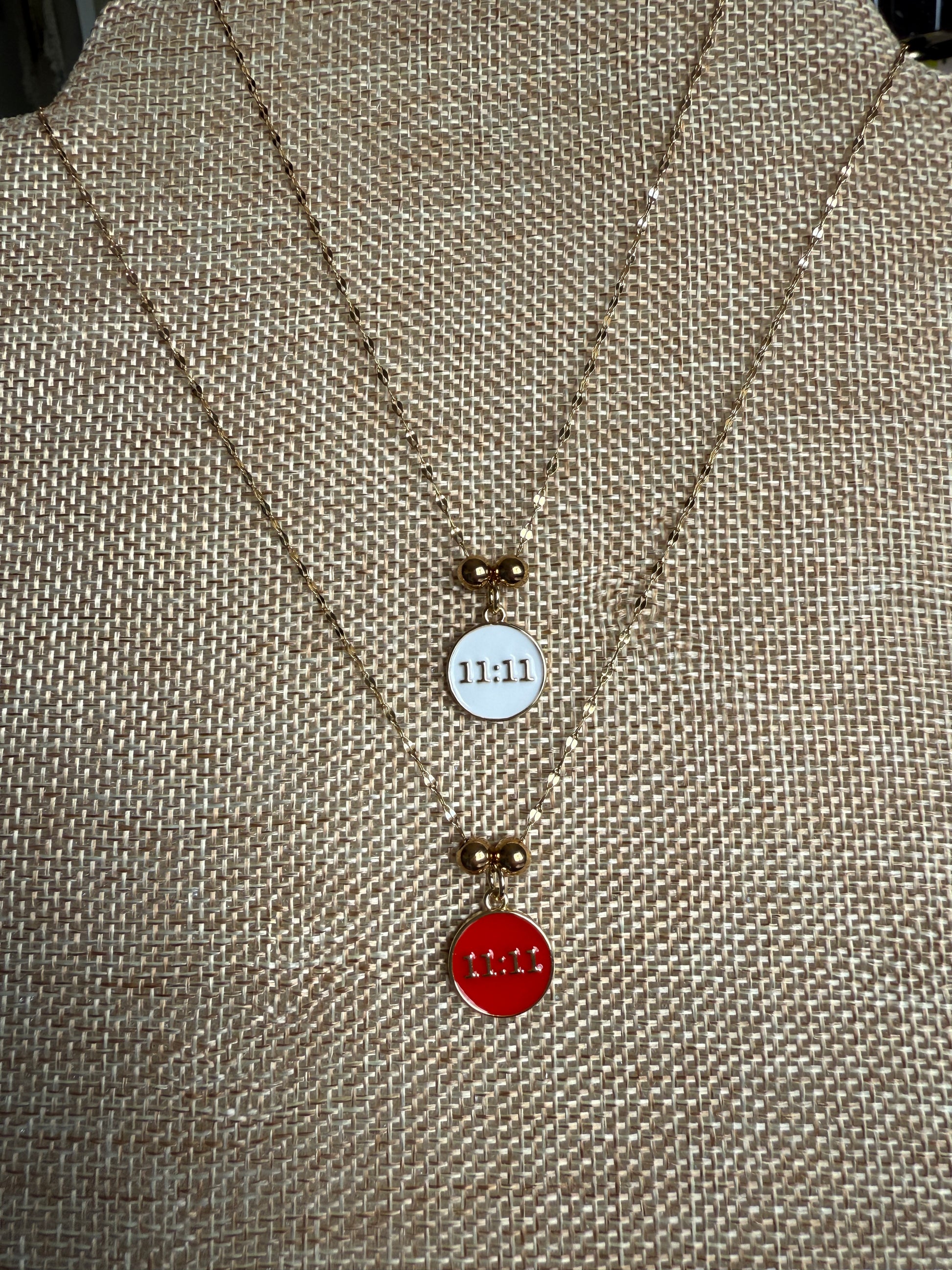 Gold plated and enamel 11:11 pendant and stainles steel Adjustable necklace