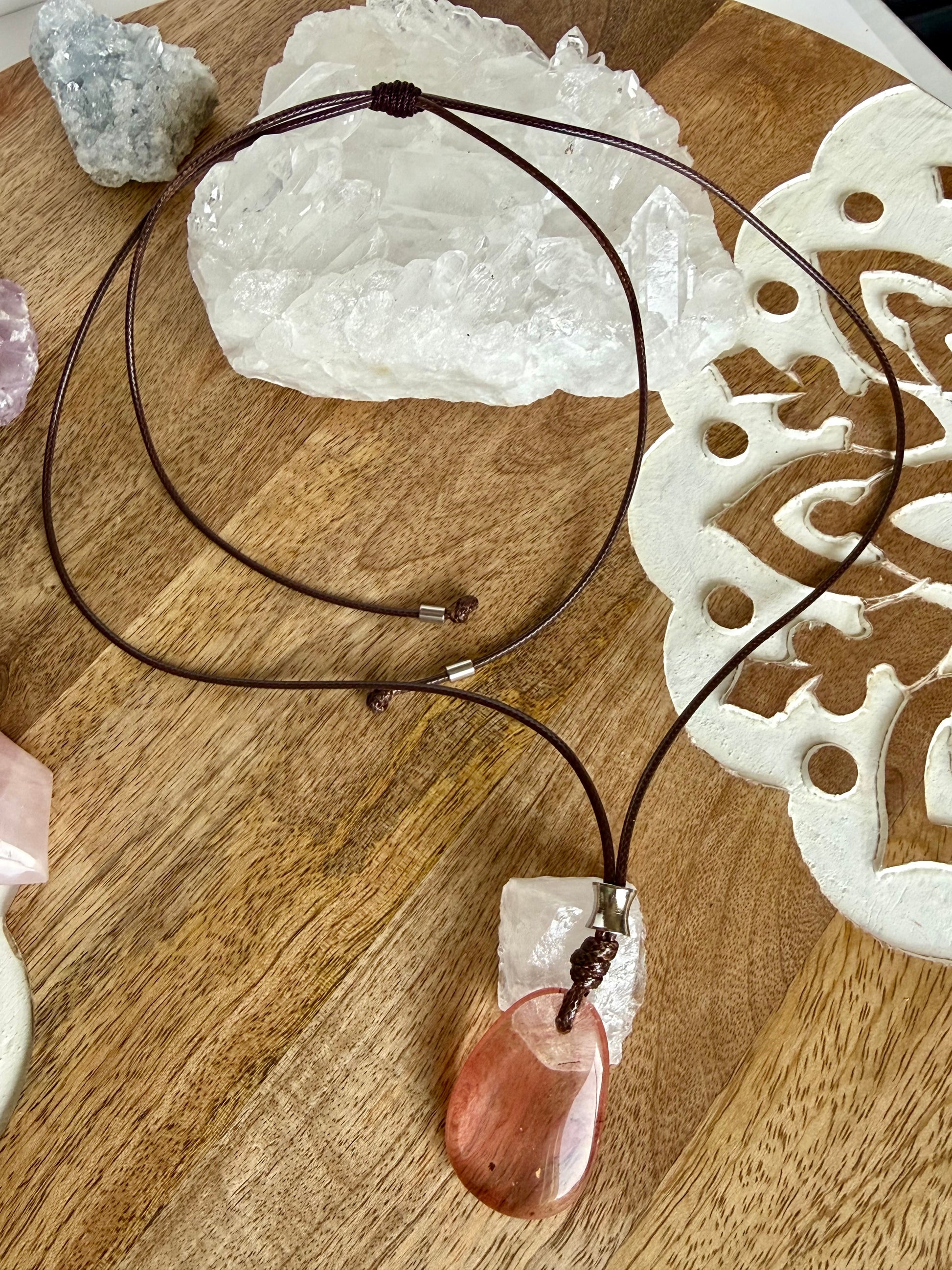 Collar ajustable con colgante de Cuarzo Cherry